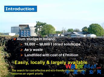 第二個方略是強化鋁污泥脫水,使其體積大大減小,為回用創(chuàng)造條件,最大限度減少體積再回用。蘇格蘭,愛爾蘭的板框壓濾(當(dāng)然經(jīng)高分子有機Polymer調(diào)節(jié)后)脫出來的鋁污泥泥餅含水率大概80%左右,可以用麻袋裝。但不可能達到60%。我們國內(nèi)報導(dǎo)板框壓濾脫出來泥餅含水率為60%,我真想親眼看一下怎么脫出來的。含水率60%的泥餅絕對可以扔出去砸碎玻璃的,很干。