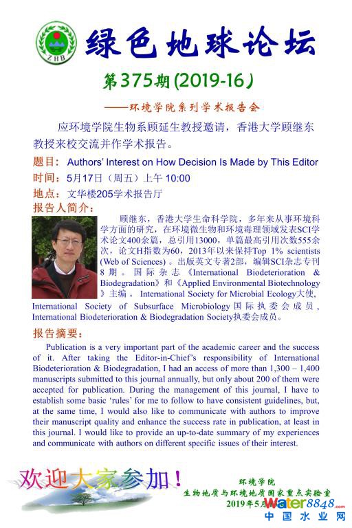 顧繼東博士長(zhǎng)期從事環(huán)境微生物的污染物降解,微生物代謝和代謝途徑,生物污損的分子機(jī)理和生物防治新方法的研究工作,在微生物降解、生物腐蝕、退化及污損防治領(lǐng)域積累了豐富的經(jīng)驗(yàn);取得了卓越的成績(jī)。尤其是在當(dāng)今國(guó)際上研究的熱門(mén)環(huán)境課題-鄰苯二甲酸脂類(lèi)和多環(huán)芳烴類(lèi)化合物的降解方面,處于國(guó)際前沿水平。如今已發(fā)表130余篇SCI論文。在國(guó)際上已出版專(zhuān)著1部《Environmental Microbiology, 2nd ed., Wiley-Blackwell. 2009》,擔(dān)任國(guó)際雜志《Ecotoxicology》、《Environmental Geochemistry and Health》、《International Biodeterioration & Biodegradation》和《Microbes and the Environment》的責(zé)任編輯;《Biodegradation》、《Ecologic Science》、《Journal of Polymers and the Environment》和《The Open Proteomics Journal》等的編委會(huì)編委 [1]