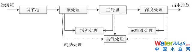 滲瀝液從取水到處理出水排放的各個工藝處理單元的總稱,包括預處理、主處理、深度處理和輔助處理等。 滲瀝液預處理、主處理和深度處理各工藝段中產(chǎn)生的污泥、濃縮液和臭氣等二次污染物,處理這些二次污染的工藝單…