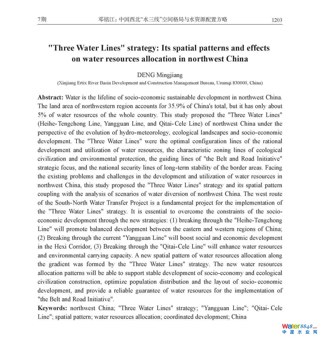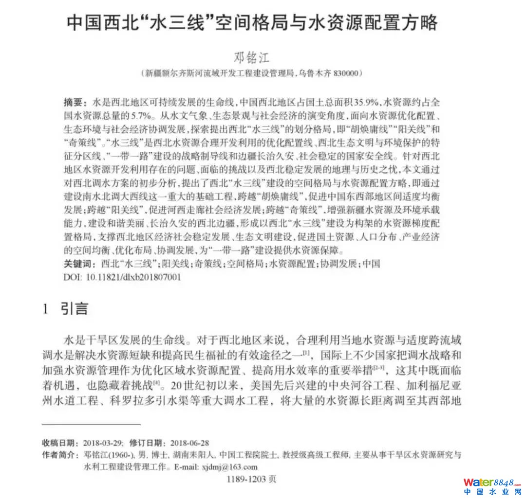 佳文推薦 | 鄧銘江教授:中國西北“水三線”空間格局與水資源配置方略