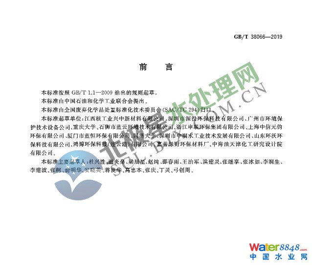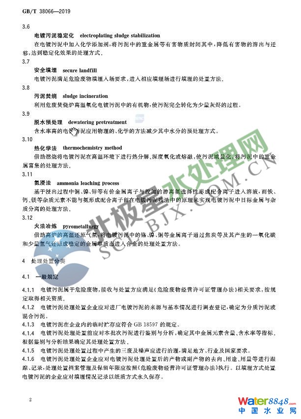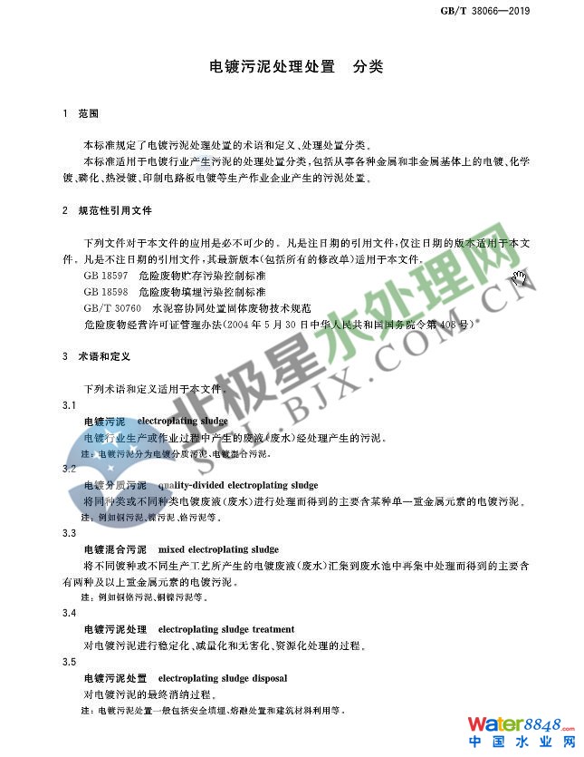 - 北極星水處理網(wǎng)獲悉,《電鍍污泥處理處置 分類(lèi)》于近日印發(fā),本標(biāo)準(zhǔn)規(guī)定了電鍍污泥處理處置的術(shù)語(yǔ)和定義、處理處置分類(lèi)。標(biāo)準(zhǔn)將于2020年9月1日起施行。詳情如下: