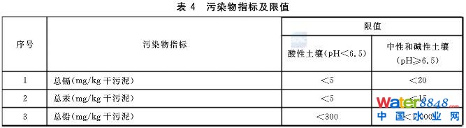 污泥園林綠化利用時,其污染物指標(biāo)及限值應(yīng)滿足表4的要求。