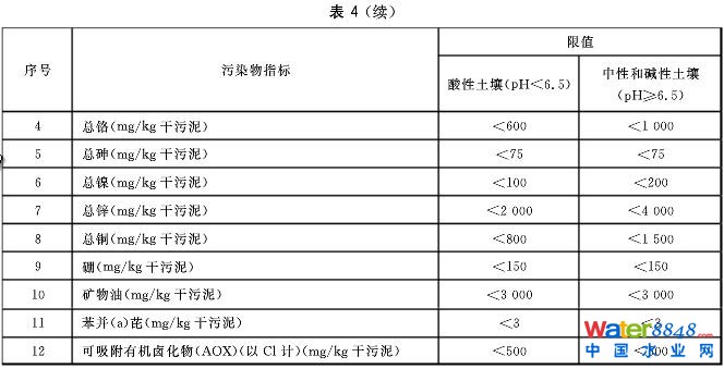 污泥土地改良利用時,其污染物指標(biāo)及限值應(yīng)滿足表4的要求。