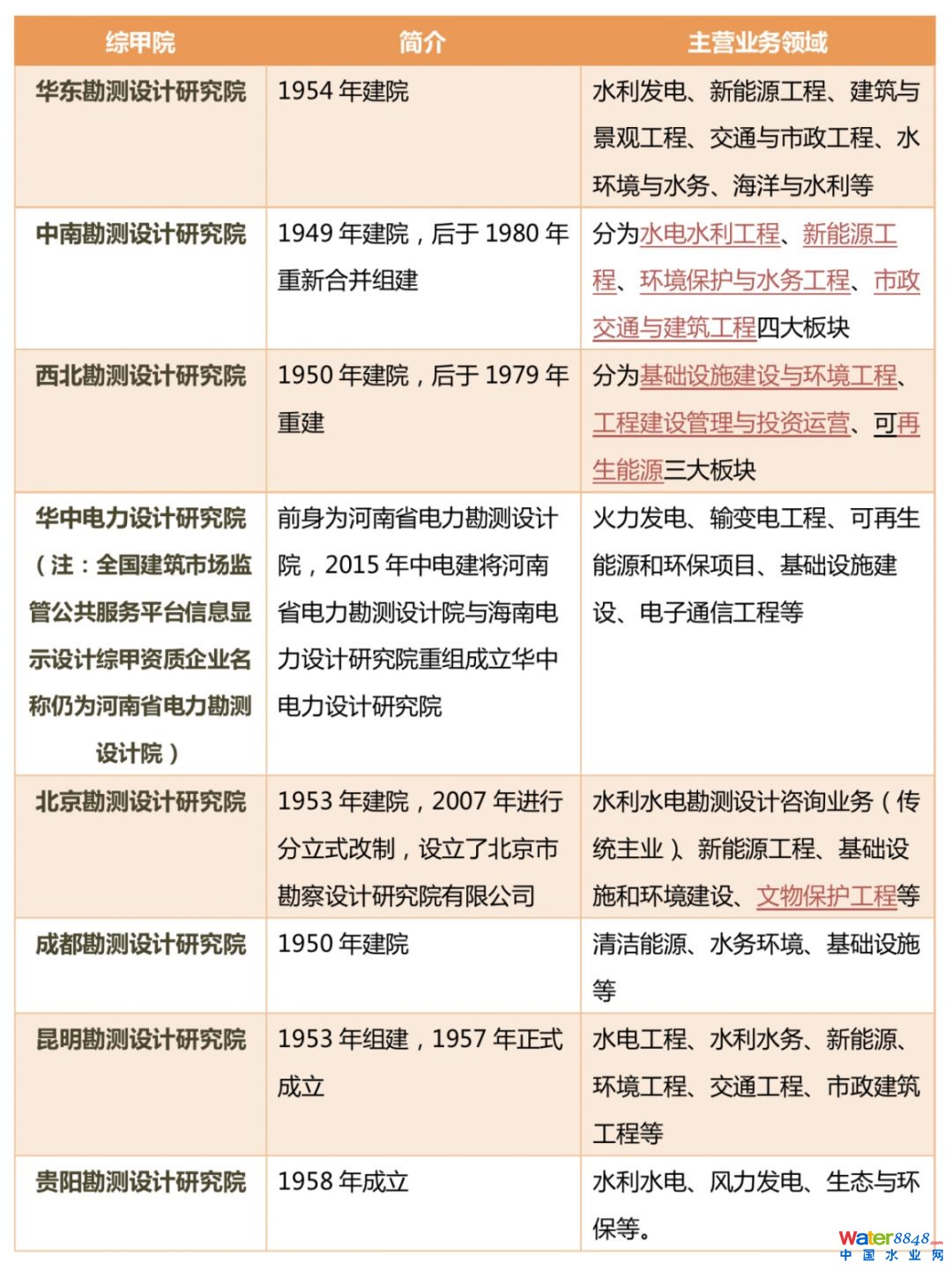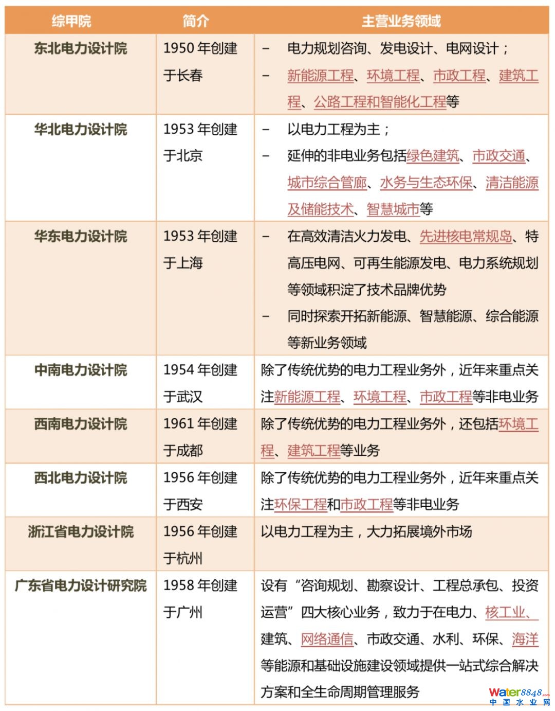 以下8家綜甲院均為中國電力建設(shè)股份有限公司的全資子公司。