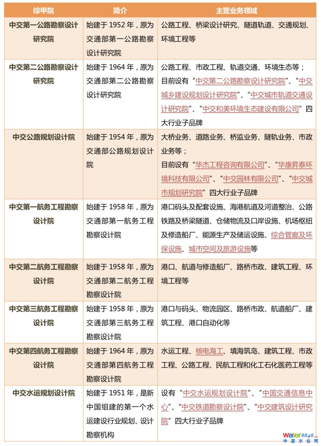 以下8家綜甲院均為中國交通建設(shè)股份有限公司的全資子公司。