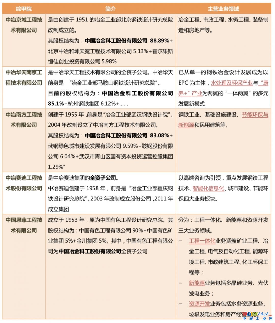 以下5家綜甲院均為中冶科工股份有限公司控股的股權(quán)多元化公司。