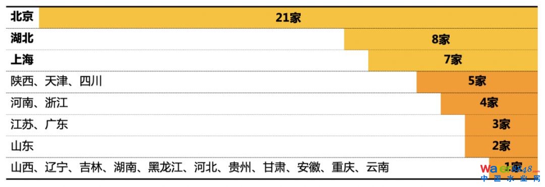 從區(qū)域分布來看,注冊(cè)地在北京的綜甲院最多(21家);其次是湖北(8家)再次是上海(7家)。