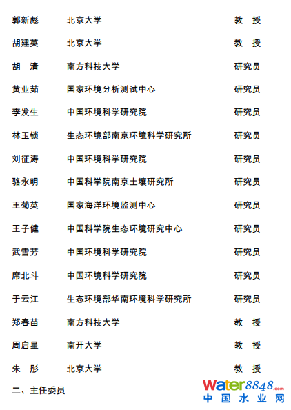 首屆國家生態(tài)環(huán)境基準(zhǔn)專家委員會委員名單