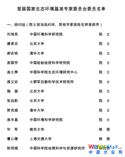 日前,生態(tài)環(huán)境部發(fā)布《首屆國家生態(tài)環(huán)境基準(zhǔn)專家委員會委員名單》,詳情如下: