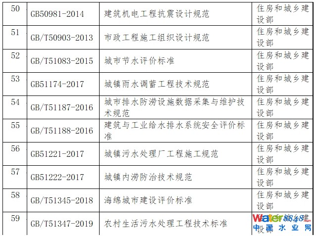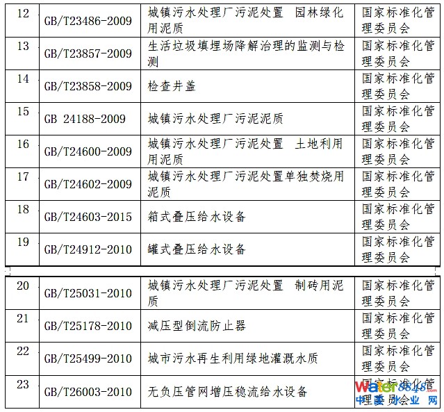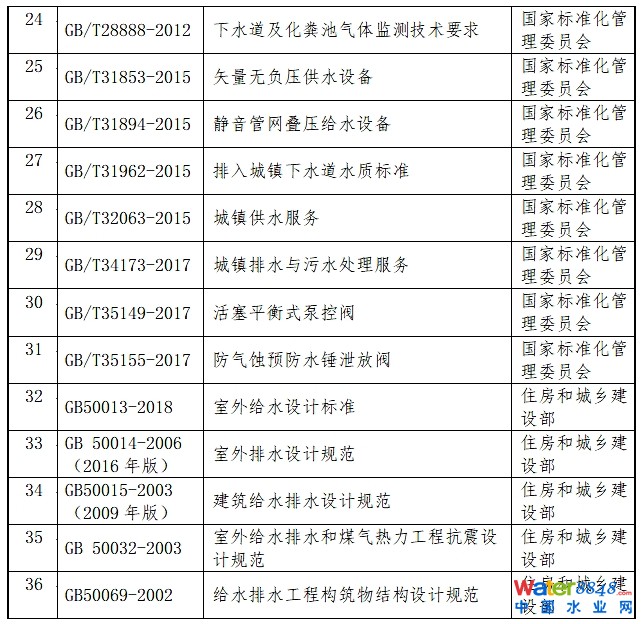 現(xiàn)行給水排水行業(yè)標(biāo)準(zhǔn)名錄