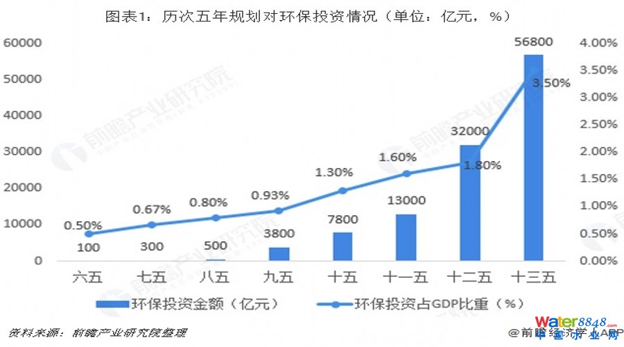 改革開(kāi)放以來(lái),我國(guó)經(jīng)濟(jì)快速發(fā)展,綜合國(guó)力顯著增強(qiáng),為持續(xù)發(fā)展,對(duì)環(huán)境保護(hù)的投入不斷增加。歷年來(lái)五年規(guī)劃對(duì)環(huán)保投資不斷增加,“九五”期間,我國(guó)環(huán)保投入達(dá)3600億元,環(huán)保投入占GDP的比例首次超過(guò)1%。“十五”期間,環(huán)保投入約占到GDP的1.3%。“十二五”期間,環(huán)保投入的比例進(jìn)一步增大。環(huán)保投資力度的不斷加大推動(dòng)我國(guó)環(huán)保產(chǎn)業(yè)不斷提升。