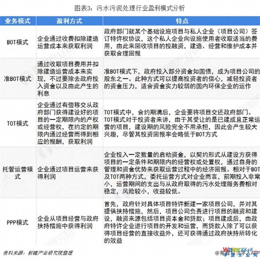 2018年,在“十三五”的推動(dòng)下,環(huán)保重要性仍繼續(xù)大幅提升,在污泥處置政策方面,區(qū)別于前幾年以投資規(guī)劃為主的政策導(dǎo)向,預(yù)計(jì)未來(lái)2-3年,將逐步建立全面的收費(fèi)機(jī)制,將污泥處置納入社會(huì)成本中。目前,污水污泥處理行業(yè)盈利模式共有五種,分別是BOT模式、準(zhǔn)BOT模式、TOT模式、托管運(yùn)營(yíng)模式、PPP模式。