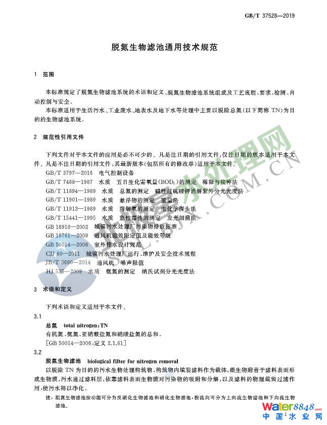 《脫氮生物濾池通用技術(shù)規(guī)范》發(fā)布 2020年1月1日起施行!