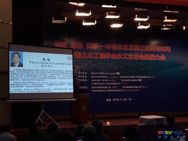 2016年11月18-19日,中國水業(yè)發(fā)展之路高峰論壇暨中國木土工程學會水工業(yè)分會換屆大會在北京的新大都飯店舉辦,會議邀請行業(yè)主管領(lǐng)導、院士、專家以及水工業(yè)分會下屬的給水、排水、建筑給排水、工業(yè)給排水、結(jié)構(gòu)、機械、電氣等7個專業(yè)委員會,圍繞水行業(yè)領(lǐng)域的重點和熱點問題的創(chuàng)新與發(fā)展進行主題交流。