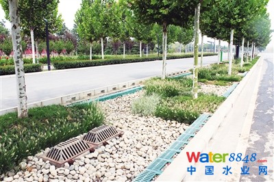 日前,在設(shè)計人員的帶領(lǐng)下,我們走在他們的設(shè)計成果——西咸新區(qū)灃西新城的街道上。如果不仔細看,道路兩側(cè)精巧的設(shè)計就會被人們忽視。道路兩邊的綠化帶要比路面低10厘米左右,每隔20米還設(shè)置有用礫石和砂土分層鋪就的滯留槽。道路上也沒有雨水篦子,而是在路沿上開了許多小口。設(shè)計人員告訴大家,這其實就是一個特殊的雨水收集系統(tǒng):道路兩側(cè)的下凹式綠化帶用來接收雨水,地下面鋪上砂石,雨水經(jīng)過“收、滲、滯、排”的過程,通過植物吸收凈化,滲入土壤補給地下水;未下滲雨水排入蓄水槽,方便干旱時對植物或景觀的補水,從而實現(xiàn)雨水的“慢排緩釋”。 大雨如果不能及時下滲,根據(jù)相應(yīng)設(shè)計,就會流入市政管網(wǎng),排向綠廊。綠廊與灃西新城道路立體交叉,可直接將兩側(cè)街區(qū)約15平方公里范圍內(nèi)的地表徑流通過地表水溝、溢流管等設(shè)施全面收集。并通過間接雨水轉(zhuǎn)移泵站對區(qū)域約25平方公里的雨水進行收集,最終形成大大小小共約330畝的雨水景觀水面,將雨洪調(diào)蓄系統(tǒng)與城市生態(tài)基礎(chǔ)設(shè)計結(jié)合,解決城市雨洪管理。