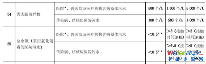 圖2 GB 8978-I996對糞大腸菌群數(shù)和總余氯的限值要求