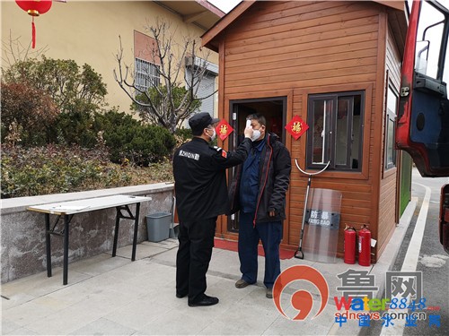 環(huán)境公司張村河水務(wù)在門禁處測(cè)體溫(拍攝:李凱)