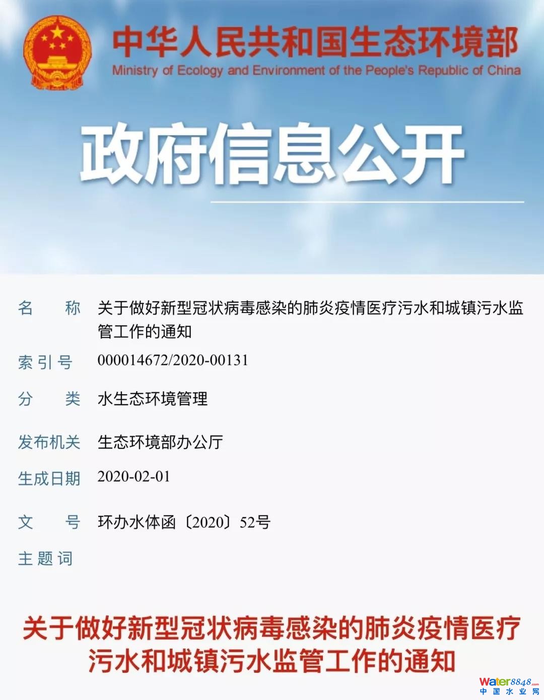 為進(jìn)一步加強(qiáng)醫(yī)療污水和城鎮(zhèn)污水監(jiān)管工作,防止新型冠狀病毒通過污水傳播擴(kuò)散,生態(tài)環(huán)境部前天(2月1日)發(fā)布了《關(guān)于做好新型冠狀病毒感染的肺炎疫情醫(yī)療污水和城鎮(zhèn)污水監(jiān)管工作的通知》(以下簡稱《通知》),要求切實(shí)加強(qiáng)對醫(yī)療污水消毒情況的監(jiān)督檢查,嚴(yán)禁未經(jīng)消毒處理或處理未達(dá)標(biāo)的醫(yī)療污水排放。對隔離區(qū)要指導(dǎo)其對外排糞便和污水進(jìn)行必要的殺菌消毒!锻ㄖ犯郊缎滦凸跔畈《疚廴镜尼t(yī)療污水應(yīng)急處理技術(shù)方案(試行)》,要求加強(qiáng)城鎮(zhèn)污水處理廠出水的消毒工作,結(jié)合實(shí)際采取投加消毒劑或臭氧、紫外線消毒等措施,確保出水糞大腸菌群數(shù)指標(biāo)達(dá)到《城鎮(zhèn)污水處理廠污染物排放標(biāo)準(zhǔn)》要求,對剩余污泥采取必要的消毒措施,防止病毒擴(kuò)散。