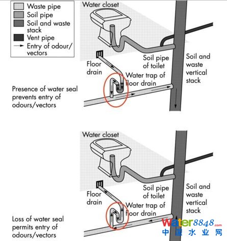 2. 水封是保障室內(nèi)環(huán)境不被排水系統(tǒng)內(nèi)有害物質(zhì)侵害的最后屏障