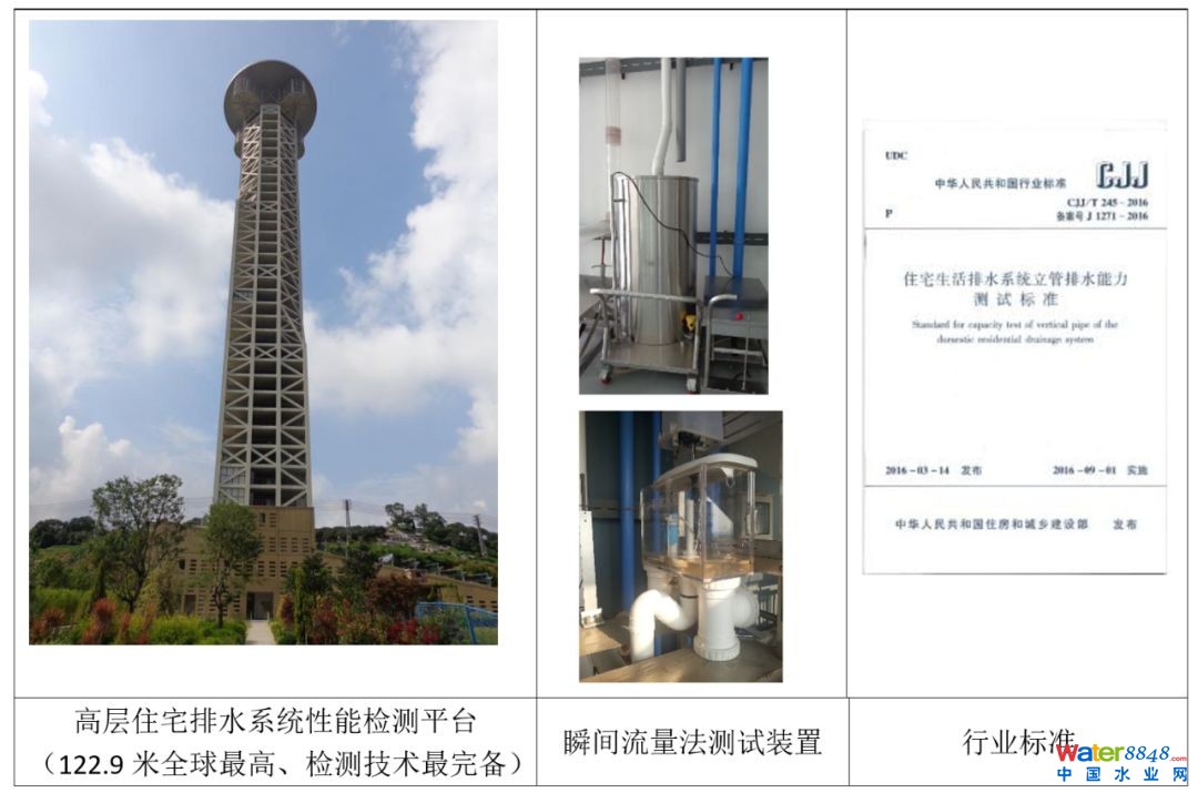 2 )建筑排水系統(tǒng)排水性能評(píng)測技術(shù)(建立了標(biāo)準(zhǔn)的檢測平臺(tái)、裝置與檢測標(biāo)準(zhǔn))