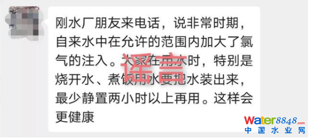 三湘都市報2月6日訊(記者石芳宇)近日,某些微信群里廣為流傳這么一則消息,說是現(xiàn)疫情期間自來水在允許范圍內(nèi)加大了氯氣的注入,建議大家用水時至少靜置兩小時再使用。經(jīng)長沙水業(yè)集團(tuán)核實,此為謠言。