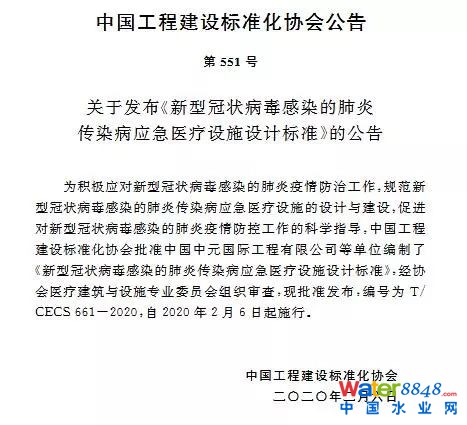 關(guān)于發(fā)布《新型冠狀病毒感染的肺炎傳染病應(yīng)急醫(yī)療設(shè)施設(shè)計(jì)標(biāo)準(zhǔn)》的公告