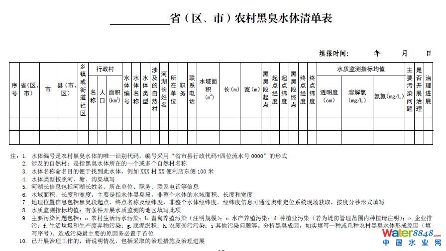 包括:黑臭水體名稱(chēng)、水體類(lèi)型、水域面積(注明長(zhǎng)、寬)、地理位置(含起止點(diǎn)名稱(chēng)及坐標(biāo))、所屬區(qū)域(行政村或自然村名稱(chēng))及其面積、人口數(shù)量等。