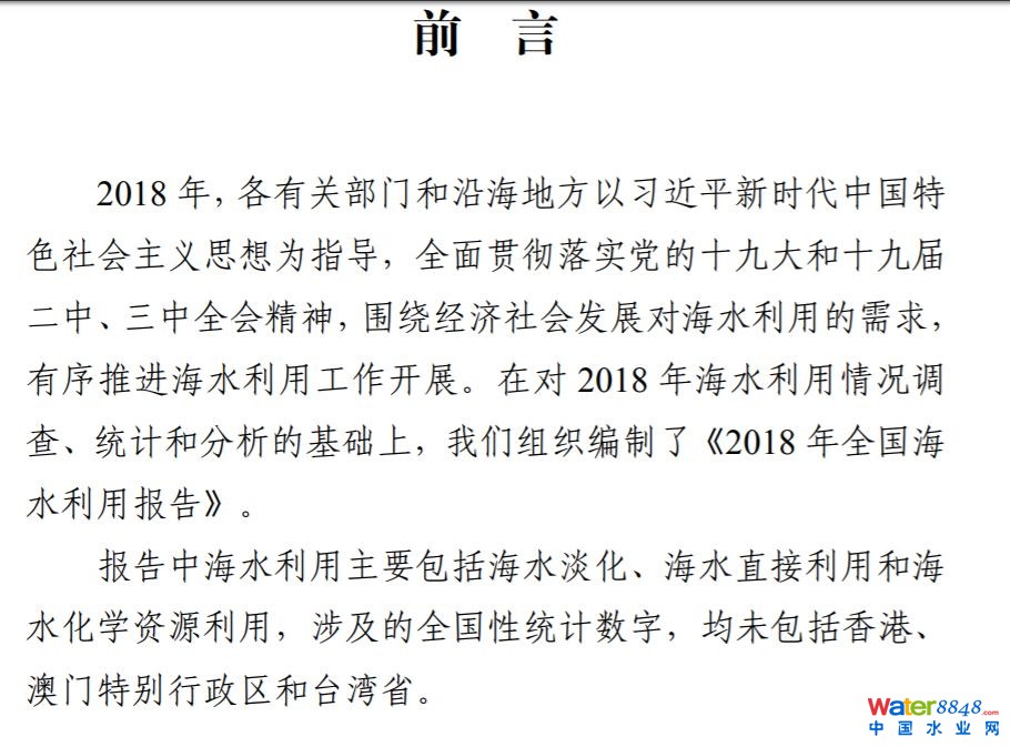 《2018年全國海水利用報(bào)告》由自然資源部海洋戰(zhàn)略規(guī)劃與經(jīng)濟(jì)司組織編制,旨在進(jìn)一步推動(dòng)海水利用產(chǎn)業(yè)發(fā)展。