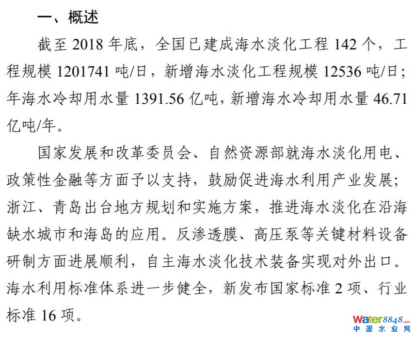 自然資源部發(fā)布《2018年全國海水利用報(bào)告》(全文)| 中國截至2018年底已建成海水淡化工程142個(gè) 日均產(chǎn)水120萬噸……