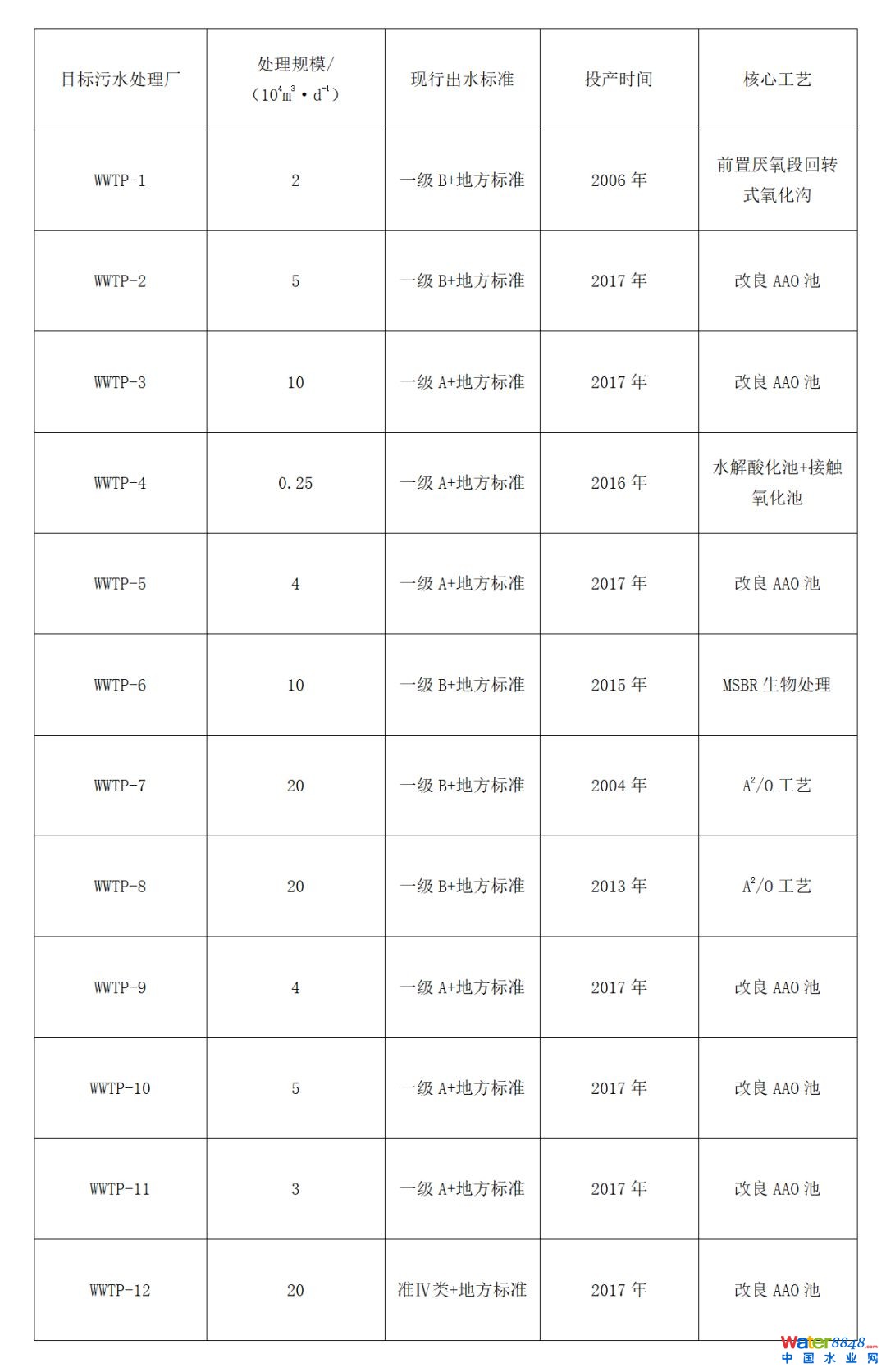 表1 東莞市12座城鎮(zhèn)污水處理廠現(xiàn)狀