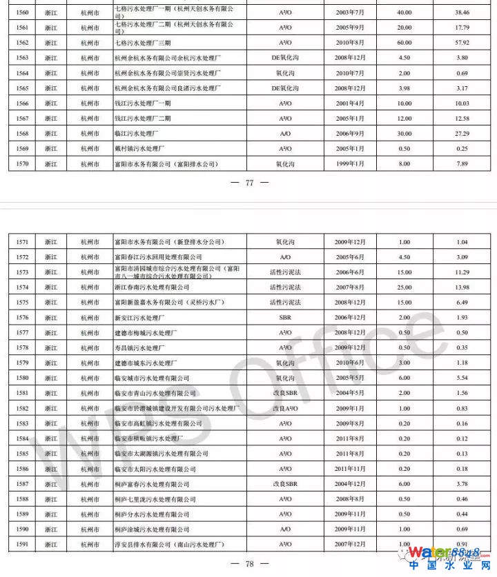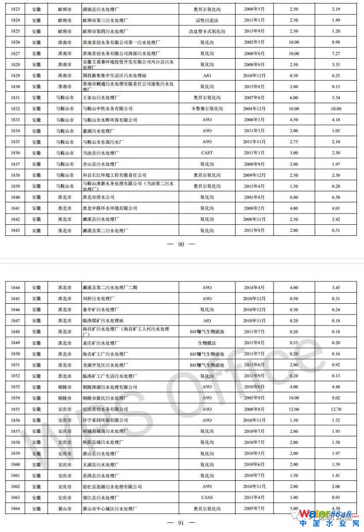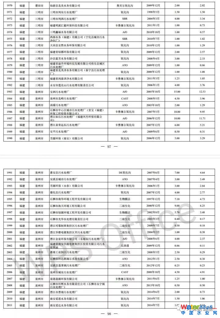 全國(guó)投運(yùn)城鎮(zhèn)污水處理設(shè)施清單