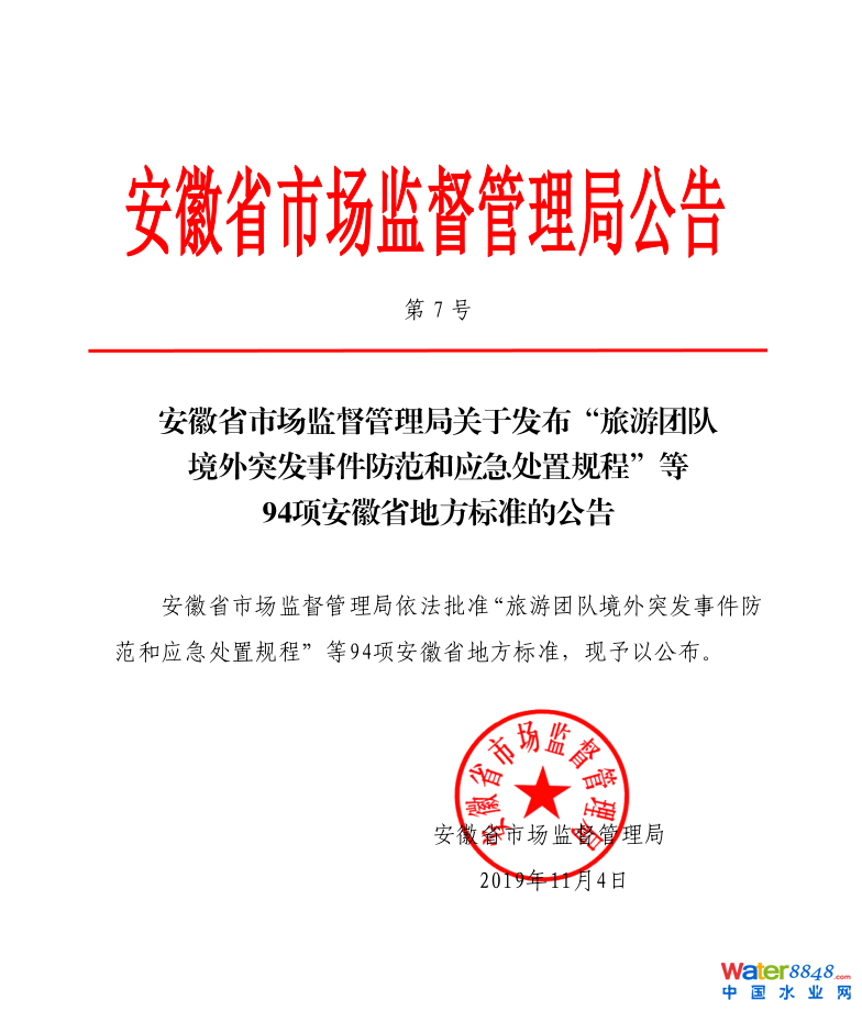 安徽省市場(chǎng)監(jiān)督管理局關(guān)于發(fā)布“旅游團(tuán)隊(duì)境外突發(fā)事件防范和應(yīng)急處置規(guī)程”等94項(xiàng)安徽省地方標(biāo)準(zhǔn)的公告