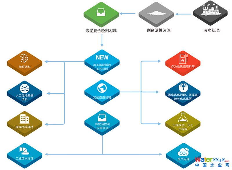 以復(fù)合吸附材料的吸附、過濾、化學(xué)等作用為基礎(chǔ),可替代現(xiàn)有污水處理中陶粒濾料,作為人工濕地基質(zhì)等用途,具有密度小、強(qiáng)度高、吸水率大、保溫、透水性好,不易板結(jié)等特點(diǎn),吸附性能優(yōu)于粘土、普通砂石,特別對磷吸附性能強(qiáng),無需添加藥劑,即可達(dá)到除磷的效果,新型的水處理吸附劑、透水路面材料,還可以用作農(nóng)業(yè)、園林中無土栽培的培養(yǎng)基等。