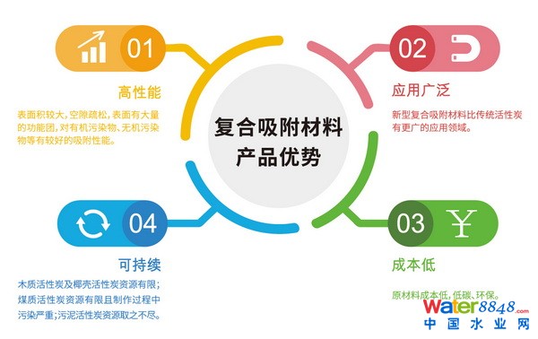 復(fù)合吸附材料比表面積較大,空隙疏松,表面有大量的功能團(tuán),對廢水廢氣中的有機(jī)物吸附效果明顯,對硫化氫、氮氧化物、二氧化硫等吸附效率達(dá)到甚至超過優(yōu)質(zhì)木質(zhì)活性炭,對水相污染物吸附能力可以達(dá)到木制活性炭的三分之一。復(fù)合吸附材料成本遠(yuǎn)低于木制活性炭,因此可以替代部分現(xiàn)有商用活性炭的應(yīng)用場合,解決活性炭原材料有限的問題,具有極強(qiáng)的市場競爭力。