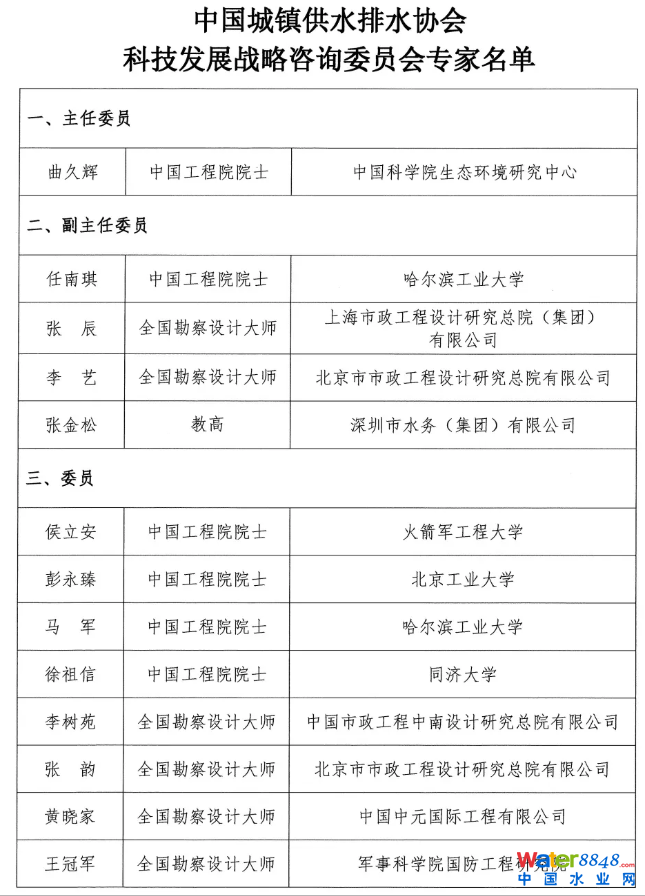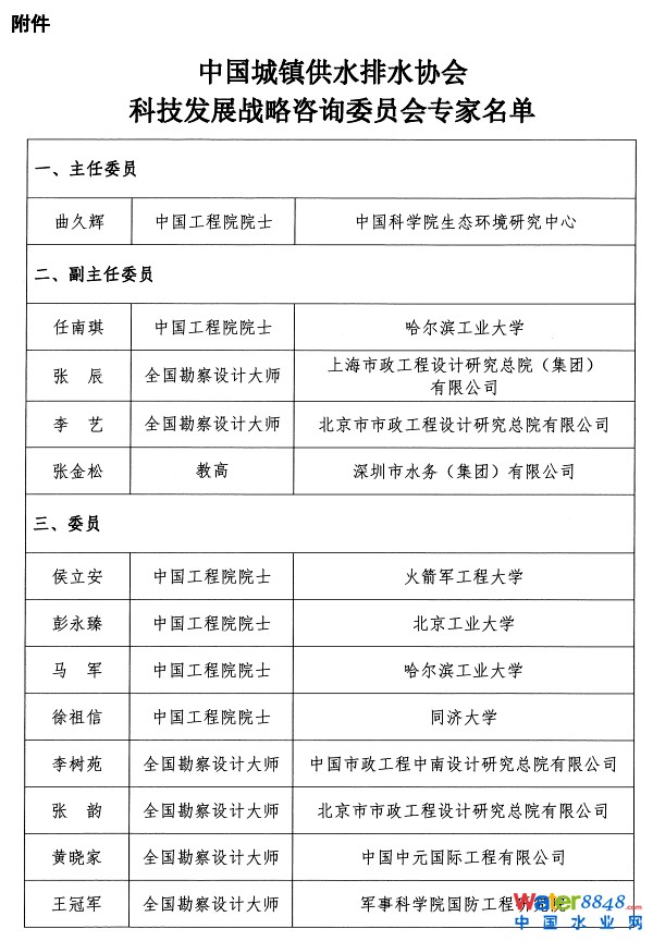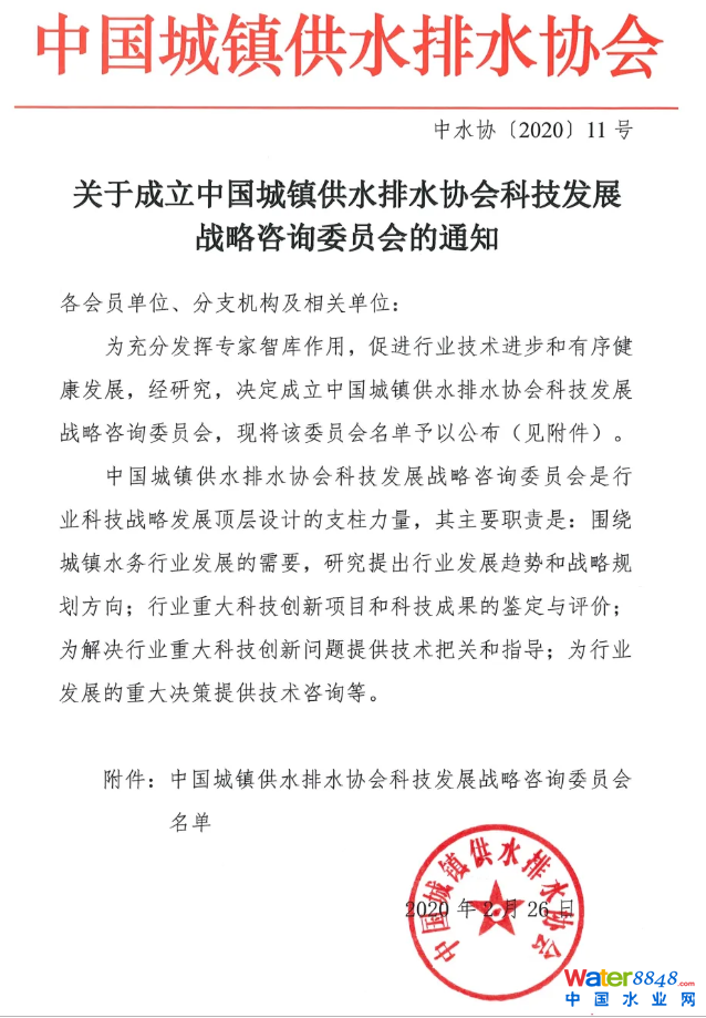 關(guān)于成立中國(guó)城鎮(zhèn)供水排水協(xié)會(huì)科技發(fā)展戰(zhàn)略咨詢委員會(huì)的通知