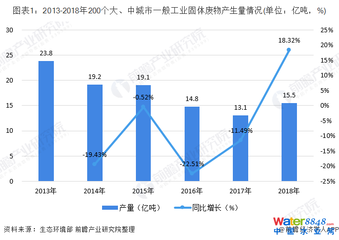 根據生態(tài)環(huán)境部發(fā)布的《2019年全國大、中城市固體廢物污染環(huán)境防治年報》,2018年,200個大、中城市一般工業(yè)固體廢物產生量達15.5億噸,較2017年產量同比增長18.32%。