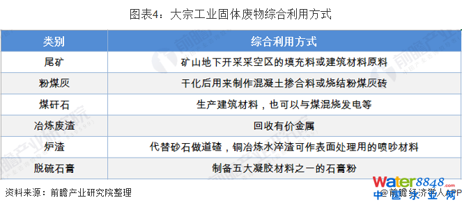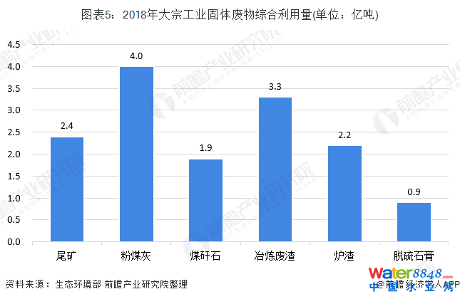 根據生態(tài)環(huán)境部統(tǒng)計數據,2018年大宗工業(yè)固體廢物綜合利用量分別為尾礦2.4億噸、粉煤灰4.0億噸、煤矸石1.9億噸、冶煉廢渣3.3億噸、爐渣2.2億噸、脫硫石膏0.9億噸。