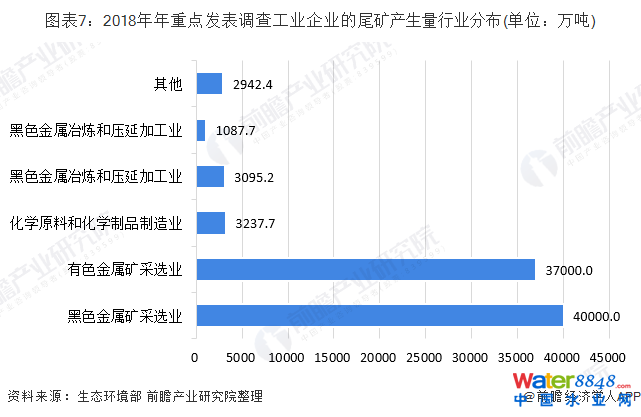 根據生態(tài)環(huán)境部統(tǒng)計數據,2018年,重點發(fā)表調查工業(yè)企業(yè)尾礦產生量較大的兩個行業(yè)是有色金屬礦采選業(yè)和黑色金屬礦采選業(yè),其產生量分別為4.0億噸和3.7億噸,綜合利用率分別為23.4%和26.8%。