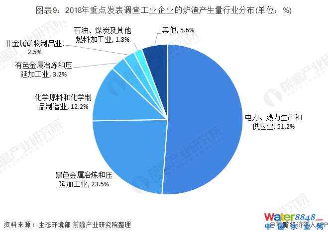根據生態(tài)環(huán)境部統(tǒng)計數據,爐渣生產量較大的行業(yè)同樣是電力、熱力生產和供應業(yè),其產生量為1.6億噸,綜合利用率為71.5%;其次是黑色金屬冶煉和壓延加工業(yè),產生量為 7261.2萬噸,綜合利用率為82.5%;第三位的行業(yè)是化學原料和化學制品制造業(yè),產生量為 3761.4萬噸,綜合利用率為56.0%。