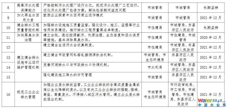 (一)加強(qiáng)組織領(lǐng)導(dǎo)。健全污水處理提質(zhì)增效三年行動(dòng)的調(diào)度、檢查、督辦、通報(bào)制度,確保污水處理提質(zhì)增效工作有序推進(jìn),行動(dòng)取得實(shí)效。各縣(市、區(qū))、市屬開(kāi)發(fā)區(qū)-11-管委會(huì)對(duì)污水處理提質(zhì)增效工作負(fù)總責(zé),要按照本方案要求,制定本轄區(qū)污水提質(zhì)增效工作方案,列出項(xiàng)目清單和年度實(shí)施計(jì)劃,對(duì)于年均進(jìn)水BOD5濃度低于100mg/l的污水處理廠,要按照“一廠一策”原則制定系統(tǒng)化整治方案并組織實(shí)施。