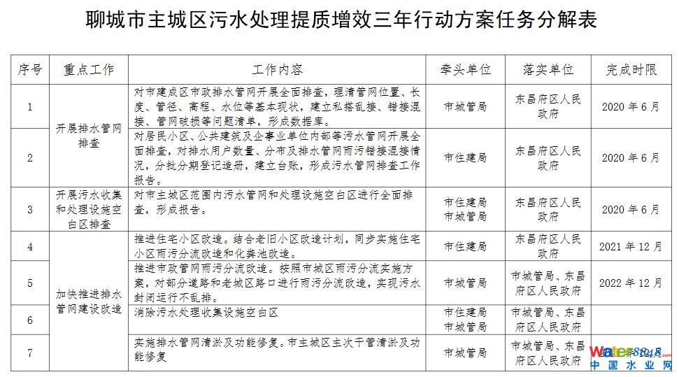 聊城市城市污水處理提質(zhì)增效三年行動(dòng)工作方案