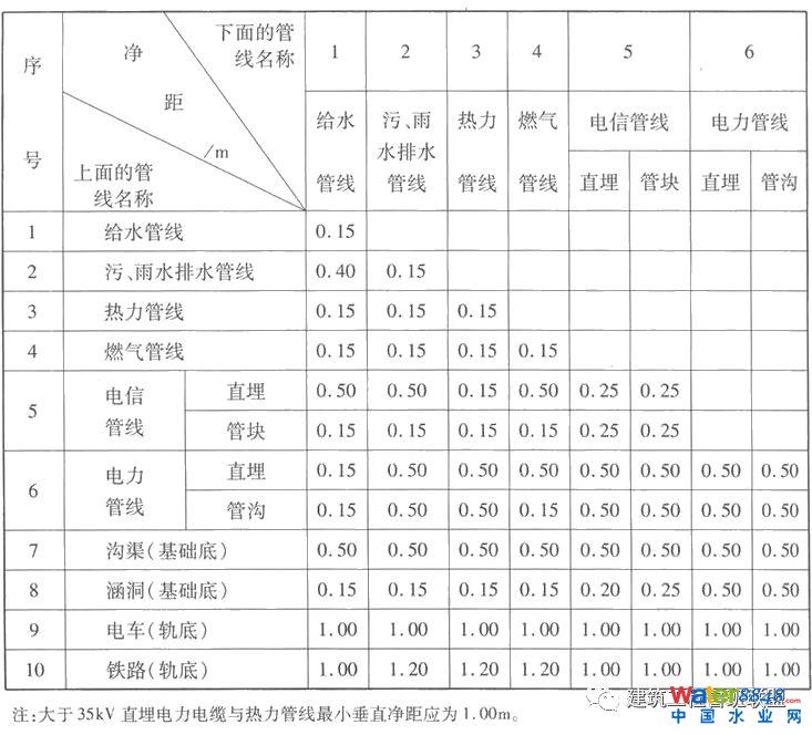 6. 工程管線在交叉點(diǎn)的高程應(yīng)根據(jù)排水管線的高程確定