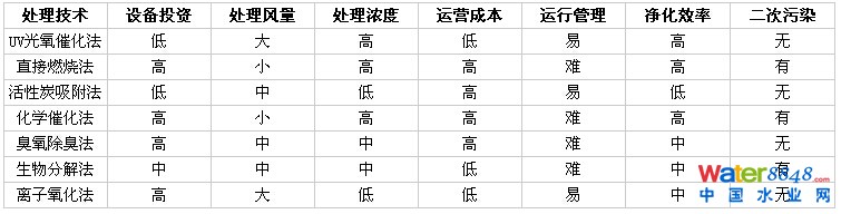 3 各種廢氣處理方法對(duì)比