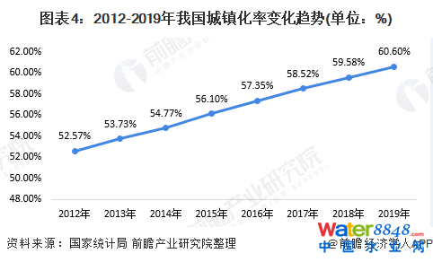 然而,隨著我國城市人口的逐年增長、城鎮(zhèn)化率的逐年提高,為城市污水處理市場既帶來了挑戰(zhàn),又帶來了機(jī)遇。2019年,我國城鎮(zhèn)人口約8.48億人,同比增長2.05%。同年,我國城鎮(zhèn)化率首次突破60%。