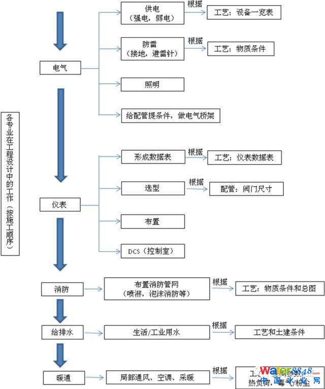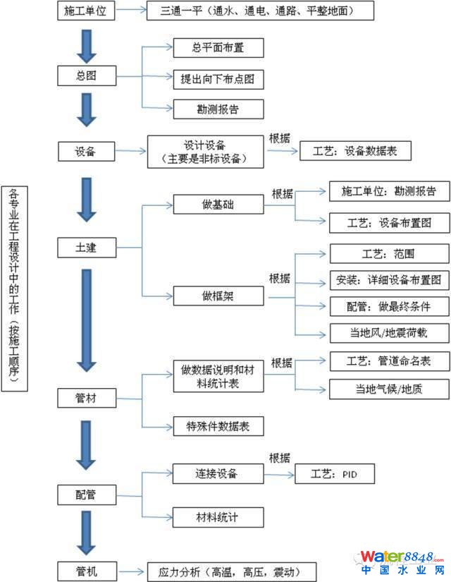 各專業(yè)在工程設(shè)計中的工作流程圖(按施工順序)