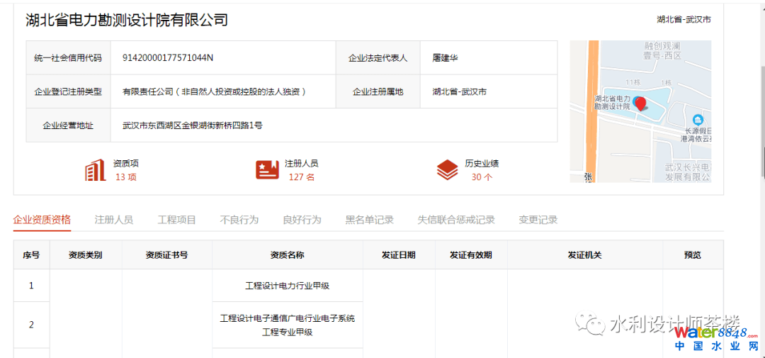 全國建筑市場監(jiān)管公共服務(wù)平臺顯示,截至目前,湖北省電力勘測設(shè)計院有限公司已獲得13項資質(zhì),具體包括:電力行業(yè)甲級、電子通信廣電行業(yè)電子系統(tǒng)工程專業(yè)甲級計電子通信廣電行業(yè)有線通信專業(yè)乙級 、市政行業(yè)熱力工程專業(yè)甲級、建筑行業(yè)(建筑工程)甲級、工程勘察綜合資質(zhì)甲級、工程勘察工程鉆探勞務(wù)、建筑工程施工總承包三級、電子與智能化工程專業(yè)承包二級、電力工程施工總承包三級、輸變電工程專業(yè)承包三級、地基基礎(chǔ)工程專業(yè)承包一級、市政公用工程施工總承包二級。