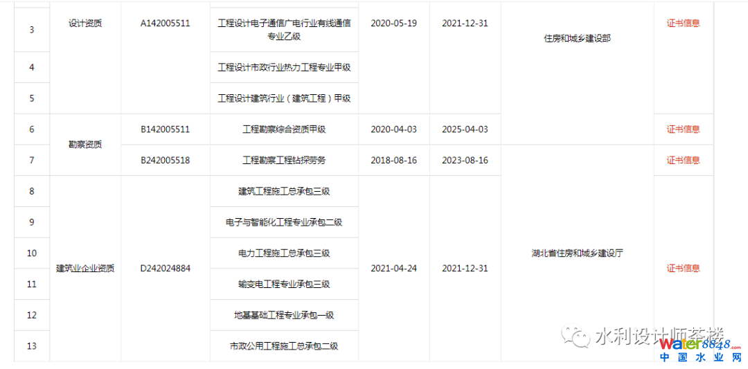 2021年10月13日,住建部官網(wǎng)發(fā)布關(guān)于核準(zhǔn)2021年度第六批建設(shè)工程企業(yè)資質(zhì)名單的公告,其中,“核準(zhǔn)工程設(shè)計資質(zhì)的單位名單”中顯示,中水北方勘測設(shè)計研究院有限責(zé)任公司(以下簡稱“中水北方”)、湖北建科國際工程有限公司獲得“工程設(shè)計綜合資質(zhì)甲級”。