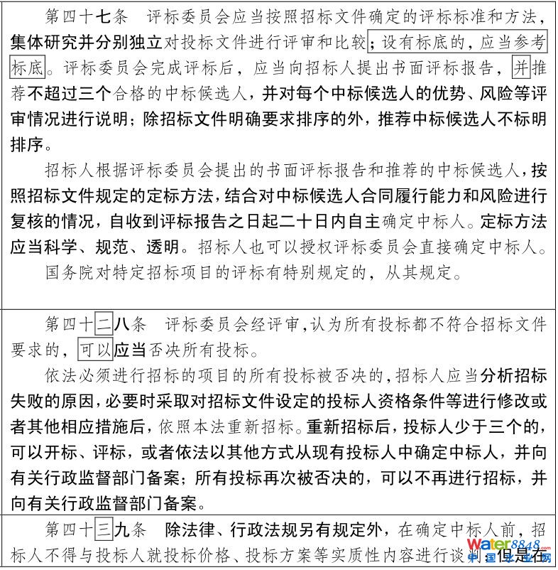 第四十八條評(píng)標(biāo)委員會(huì)經(jīng)評(píng)審,認(rèn)為所有投標(biāo)都不符合招標(biāo)文件要求的,可以應(yīng)當(dāng)否決所有投標(biāo)。