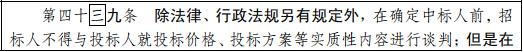 三、在確定中標(biāo)人前,招標(biāo)人 不得與投標(biāo)人就投標(biāo)價(jià)格、投標(biāo)方案等實(shí)質(zhì)性內(nèi)容進(jìn)行談判。