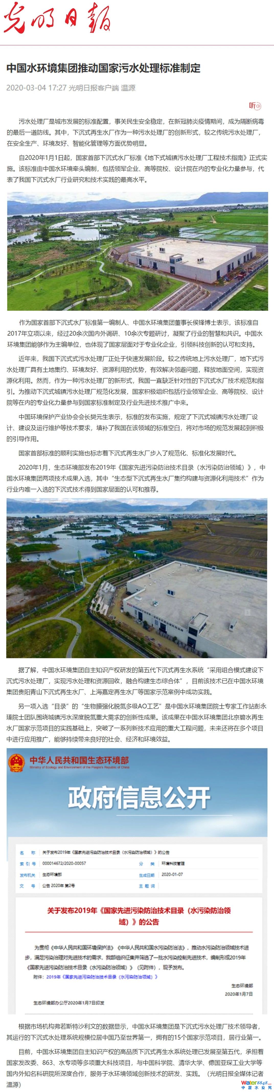 光明日?qǐng)?bào) | 中國水環(huán)境集團(tuán)推動(dòng)國家污水處理標(biāo)準(zhǔn)制定